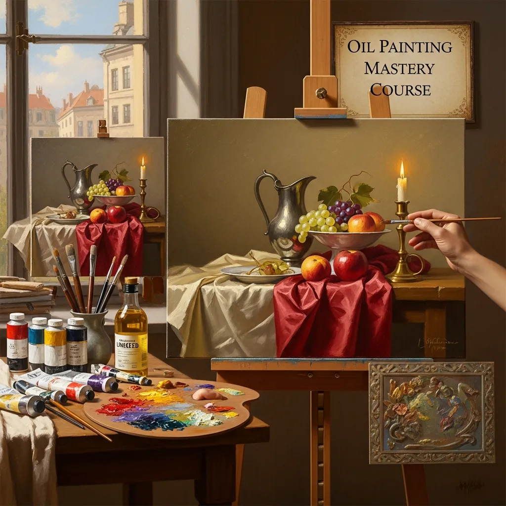 Dive deep into classical oil painting techniques across 12 intensive modules. Explore color theory, layering methods, glazing, impasto, and portrait fundamentals. Features 60+ lessons, studio demonstrations, and personalized critiques from master artists.